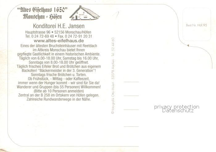 73658880 Hoefen Monschau Altes Eifelhaus Historisches Gebaeude um 1650 Bruchsteinhaus mit Reetdach postalisch nicht gelaufen Erhaltung siehe scans [FriedD77] KatCode: 11110005354020
