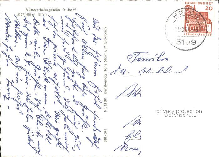 72449213 alte Postkarte Hoefen Monschau Muettererholungsheim Sankt Josef postalisch gelaufen Erhaltung siehe scans KatCode: 11110005354020