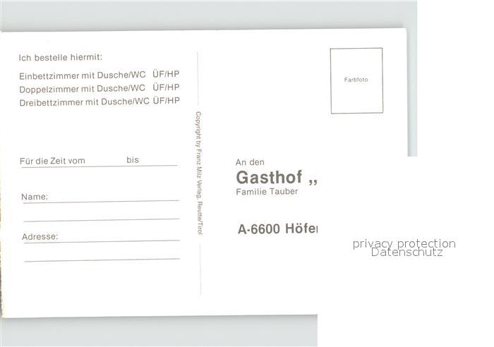 71921063 Hoefen Tirol Gasthof Lilie Gaststube Zimmer postalisch nicht gelaufen Erhaltung siehe scans KatCode: 11390331070816