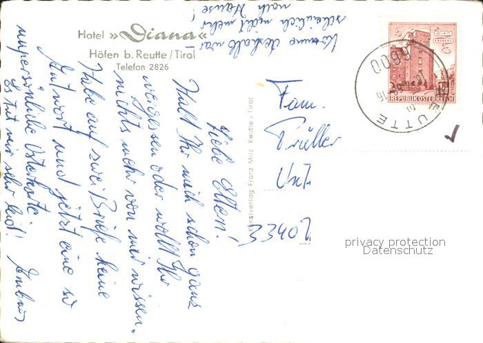 12445090 alte Postkarte Hoefen Tirol Hotel Diana Seilbahn postalisch gelaufen Erhaltung siehe scans KatCode: 11390331070816