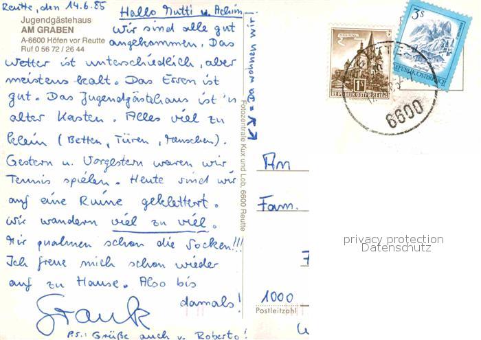 72701081 alte Postkarte Hoefen Tirol Jugendgaestehaus Am Graben postalisch gelaufen Erhaltung siehe scans [FriedD77] KatCode: 11390331070816