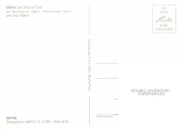 72674687 Hoefen Tirol mit Gaichtspitze Hahnenkamm und Titzl postalisch nicht gelaufen Erhaltung siehe scans [WerneD78] KatCode: 11390331070816