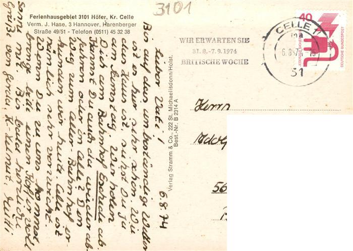 73894586 alte Postkarte Hoefer Celle Bungalowsiedlung Hoefer I III und IV Freibad postalisch gelaufen Erhaltung siehe scans [WerneD78] KatCode: 11110003351014