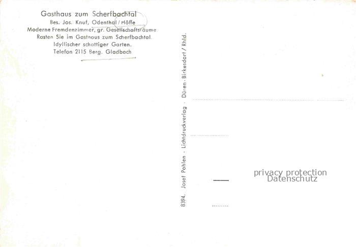Hoeffe Odenthal Rheinisch-Bergischer-Kreis NRW Gasthaus zum Scherfbachtal postalisch nicht gelaufen Erhaltung siehe scans [FriedD77] Frie Katcode 11110005378020