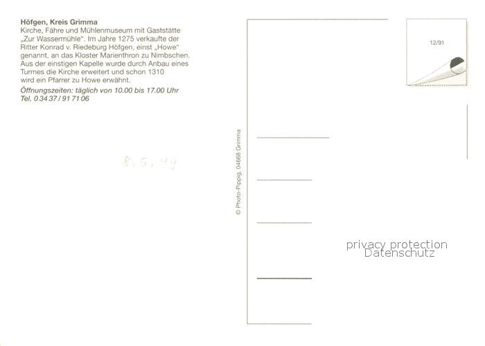 73734548 Hoefgen Grimma Kirche Faehre Muehlenmuseum Gaststaette Zur Wassermuehle postalisch nicht gelaufen Erhaltung siehe scans [FriedD77] KatCode: 11110014383120