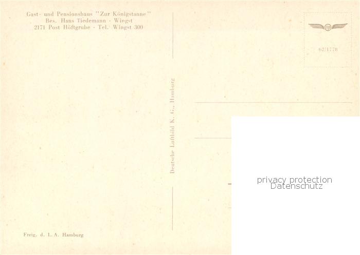 73751476 Hoeftgrube Wingst Gast und Pensionshaus Zur Koenigstanne postalisch nicht gelaufen Fliegeraufnahme Erhaltung siehe scans [WerneD78] KatCode: 11110003352056