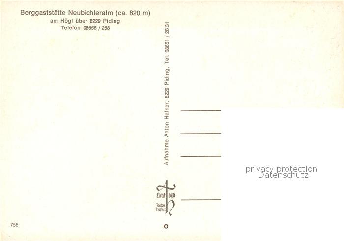 73248837 Hoegl Piding Berggaststaette Neubichleralm postalisch nicht gelaufen Erhaltung siehe scans [NatalD47] KatCode: 11110009172128