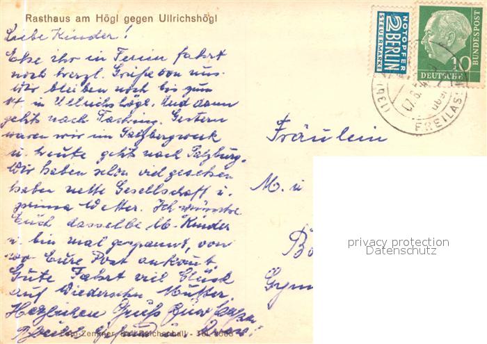 73294593 alte Postkarte Hoegl Piding Rasthaus gegen Ullrichshoegl postalisch gelaufen Erhaltung siehe scans [LiesaD40] KatCode: 11110009172128