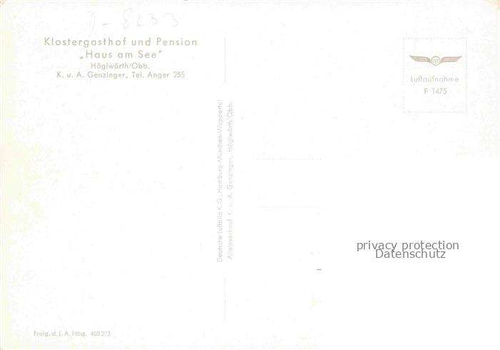 74040556 Hoeglwoerth Anger Bayern Klostergasthof Pension Haus am See postalisch nicht gelaufen Erhaltung siehe scans [FriedD77] KatCode: 11110009172112