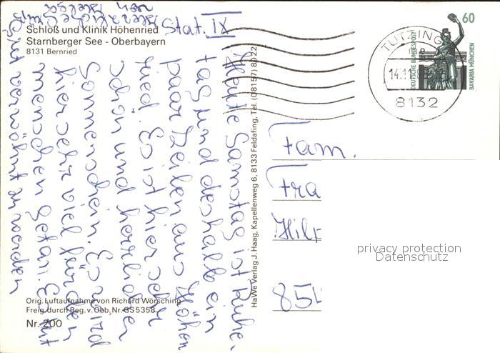 72567112 alte Postkarte Hoehenried Starnberger See Fliegeraufnahme Schloss und Klinik postalisch gelaufen Erhaltung siehe scans [LiesaD40] KatCode: 11110009190115