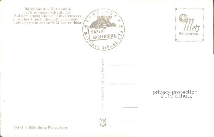 72271399 Hoehlen Caves Grottes Bärenhöhle-Karlshöhle Erpfingen KatCode 22440000000500
