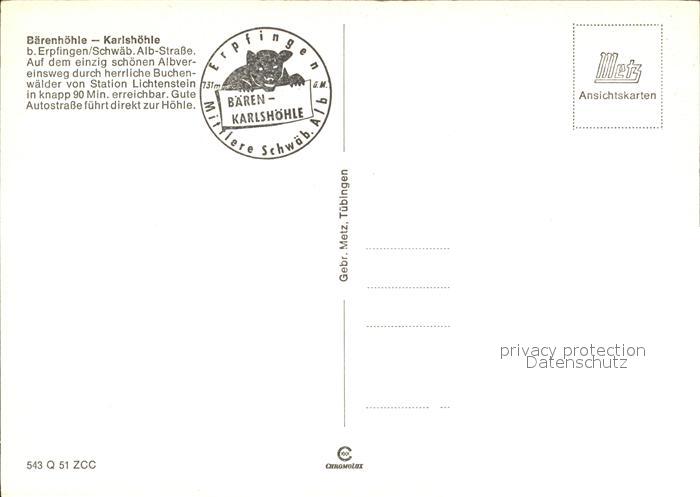 72530942 Hoehlen Caves Grottes Bärenhöhle Karlshöhle Erpfingen KatCode 22440000000500