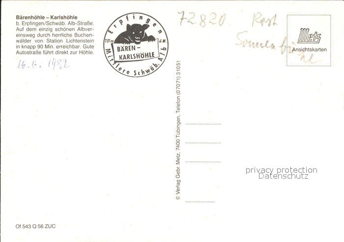 72165419 Hoehlen Caves Grottes Bärenhöhle Karlshöhle Erpfingen KatCode 22440000000500
