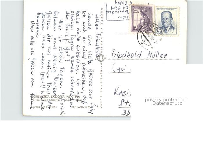 alte Postkarte Hoehlen Caves Grottes Dobsinska l’Adova Jaskyna Slowakei postalisch gelaufen Erhaltung siehe scans