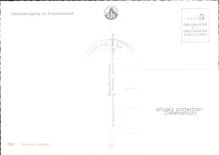 Hoehlen Caves Grottes Eisriesenwelt Hoehleneingang postalisch nicht gelaufen Erhaltung siehe scans