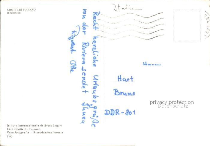 alte Postkarte Hoehlen Caves Grottes Grotte di Toirano Pantheon Riviera Ligure postalisch gelaufen Erhaltung siehe scans