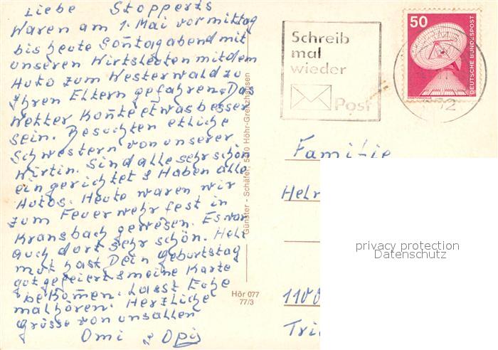 73671922 alte Postkarte Hoehr-Grenzhausen Gesamtansicht Realschule Schwimmbad Grenzau mit Burgruine postalisch gelaufen Erhaltung siehe scans [WerneD78] KatCode: 11110007143032