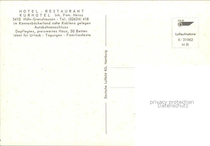 72455127 Hoehr-Grenzhausen Hotel Restaurant Kurhotel postalisch nicht gelaufen Erhaltung siehe scans KatCode: 11110007143032