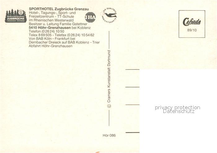 73073945 Hoehr-Grenzhausen Sporthotel Zugbruecke Grenzau Fitness Tischtennishalle Burgruine postalisch nicht gelaufen Erhaltung siehe scans [WerneD78] KatCode: 11110007143032