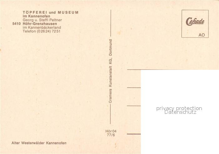 73635177 Hoehr-Grenzhausen Toepferei und Museum Im Kannenofen postalisch nicht gelaufen Erhaltung siehe scans [WerneD78] KatCode: 11110007143032