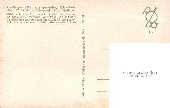 73571065 Hoehscheid Ausflugsgaststaette Kohlbergerhoehe postalisch nicht gelaufen Erhaltung siehe scans [WerneD78] KatCode: 11110005122000