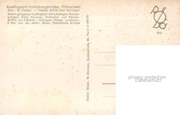 73585566 Hoehscheid Ausflugsort Kohlsbergerhoehe Gartenterrasse postalisch nicht gelaufen Erhaltung siehe scans [FriedD77] KatCode: 11110005122000