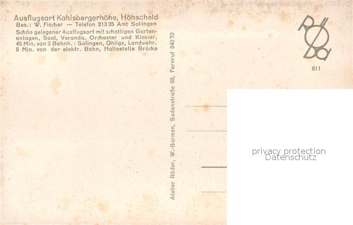 73575903 Hoehscheid Ausflugsort Kohlsbergerhoehe Restauration postalisch nicht gelaufen Erhaltung siehe scans [FriedD77] KatCode: 11110005122000