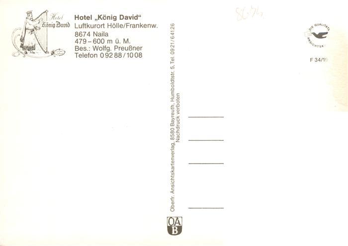 73940557 Hoelle Bad Steben Hoellental Hotel Koenig David Luftkurort postalisch nicht gelaufen Erhaltung siehe scans [FriedD77] Frie Katcode 11110009475112