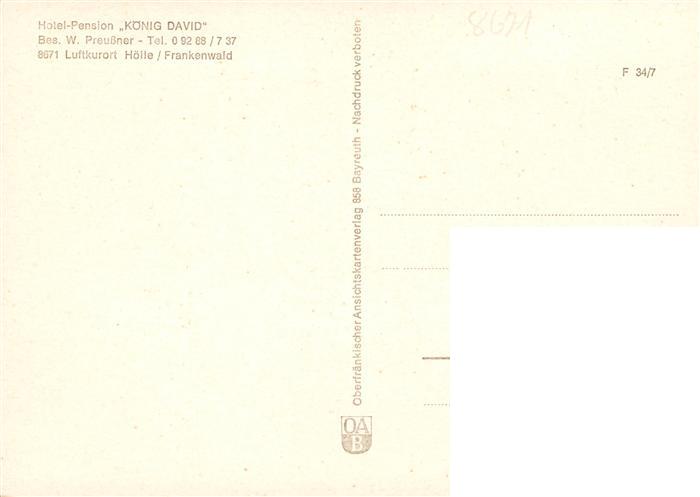 73941318 Hoelle Bad Steben Hoellental Hotel Pension Koenig David im Frankenwald postalisch nicht gelaufen Erhaltung siehe scans [FriedD77] Frie Katcode 11110009475112