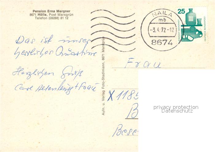 73748022 alte Postkarte Hoelle Marxgruen Pension Erna Mergner postalisch gelaufen Erhaltung siehe scans [WerneD78] KatCode: 11110009475156