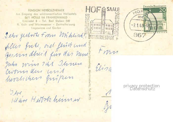 73739292 alte Postkarte Hoelle Marxgruen Pension Herbolzheimer postalisch gelaufen Erhaltung siehe scans [WerneD78] KatCode: 11110009475156