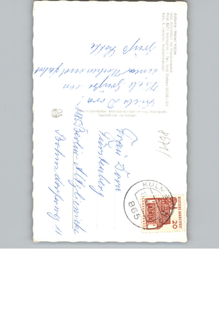 31171522 Hoelle Naila Adama´s Hotel postalisch nicht gelaufen KatCode: 11110009475156
