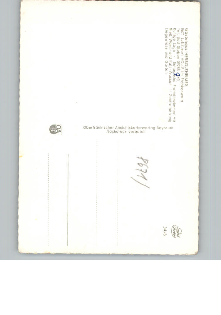 31171543 Hoelle Naila Pension Herbolzheimer postalisch nicht gelaufen KatCode: 11110009475156