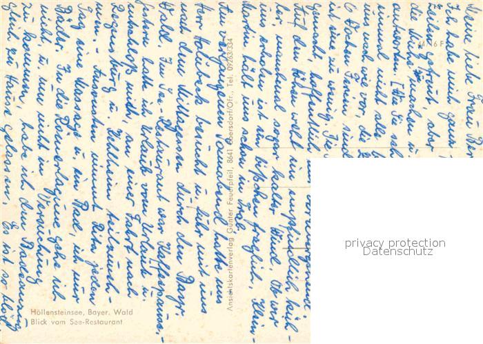 72840036 Hoellensteinsee Blick vom Seerestaurant postalisch nicht gelaufen Erhaltung siehe scans [LiesaD40] KatCode: 11110009276144