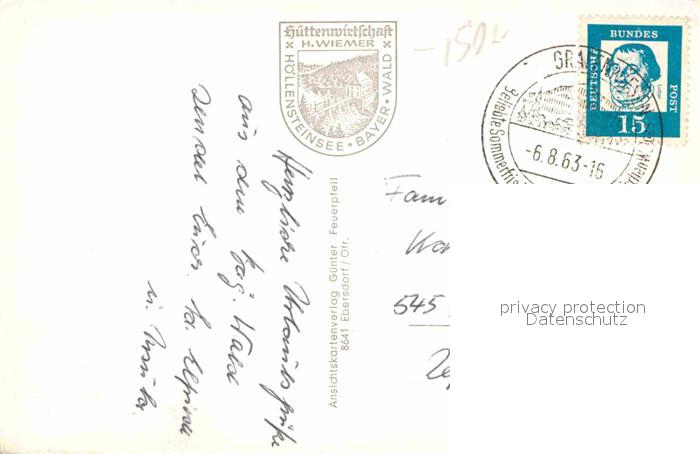 72907125 alte Postkarte Hoellensteinsee Cafe Huettenwirtschaft postalisch gelaufen Erhaltung siehe scans [NatalD47] KatCode: 11110009276144