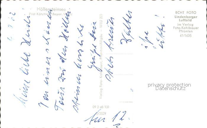 72295194 Hoellensteinsee Fliegeraufnahme postalisch nicht gelaufen Erhaltung siehe scans KatCode: 11110009276144