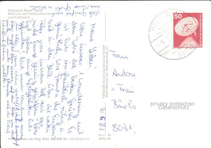 72256974 alte Postkarte Hoellensteinsee und Kraftwerk Naturpark Bayerischer Wald Fliegeraufnahme postalisch gelaufen Erhaltung siehe scans KatCode: 11110009276144