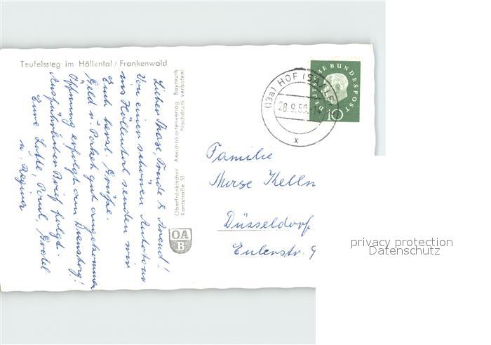 72218599 alte Postkarte Hoellental Frankenwald Teufelssteg postalisch gelaufen Erhaltung siehe scans KatCode: 11110009475156
