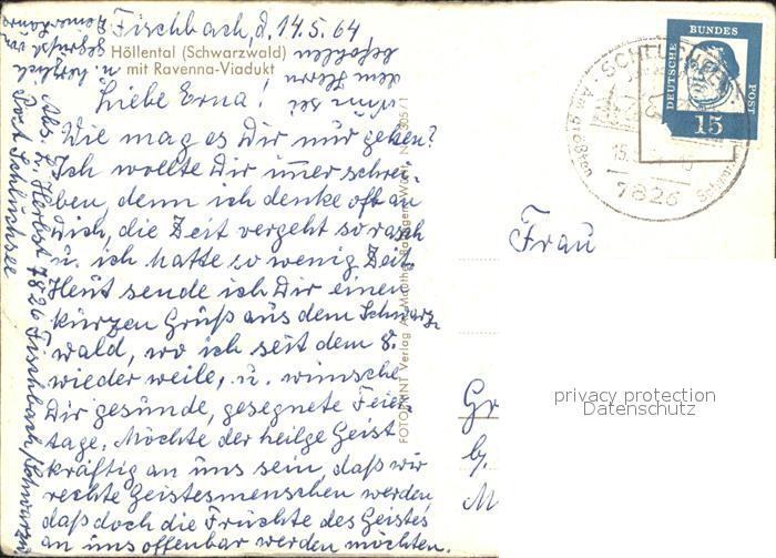 72366057 alte Postkarte Hoellental Schwarzwald mit Ravenna Viadukt postalisch gelaufen Erhaltung siehe scans KatCode: 11110008315020