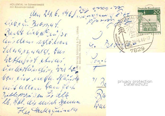 72692847 alte Postkarte Hoellental Schwarzwald mit Ravennaviadukt Eisenbahn postalisch gelaufen Erhaltung siehe scans [FriedD77] KatCode: 11110008315020