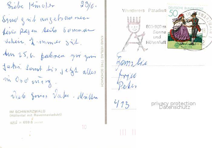 72741928 alte Postkarte Hoellental Schwarzwald mit Ravennaviadukt postalisch gelaufen Erhaltung siehe scans [WerneD78] KatCode: 11110008315020