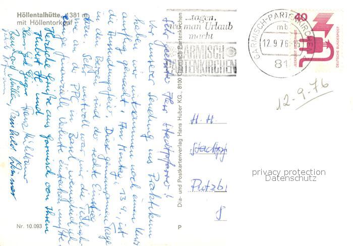 73071437 alte Postkarte Hoellentalhuette Hoellentorkopf postalisch gelaufen Erhaltung siehe scans [NatalD47] KatCode: 11110009162000