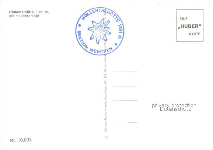 72537674 Hoellentalhuette Hoellerkopf postalisch nicht gelaufen Erhaltung siehe scans [AndreD76 kt119box] KatCode: 11110009162000