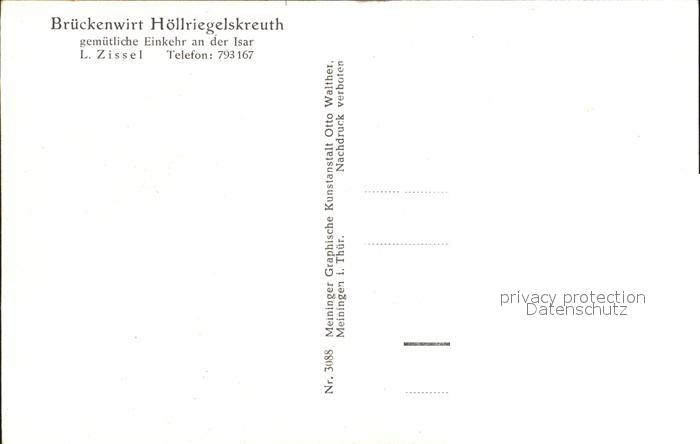 32035191 Hoellriegelskreuth Brueckenwirt postalisch nicht gelaufen Erhaltung siehe scans KatCode: 11110009184139