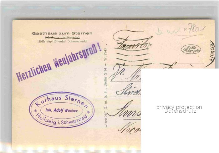 42808141 alte Postkarte Hoellsteig Gasthaus zum Sternen postalisch gelaufen Erhaltung siehe scans [AndreD76] KatCode: 11110008315052