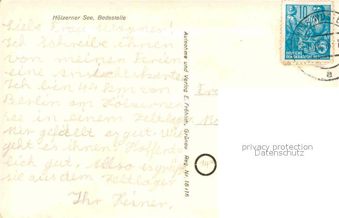 72749210 alte Postkarte Hoelzern See postalisch gelaufen Erhaltung siehe scans [AndreD76] KatCode: 11110008125021