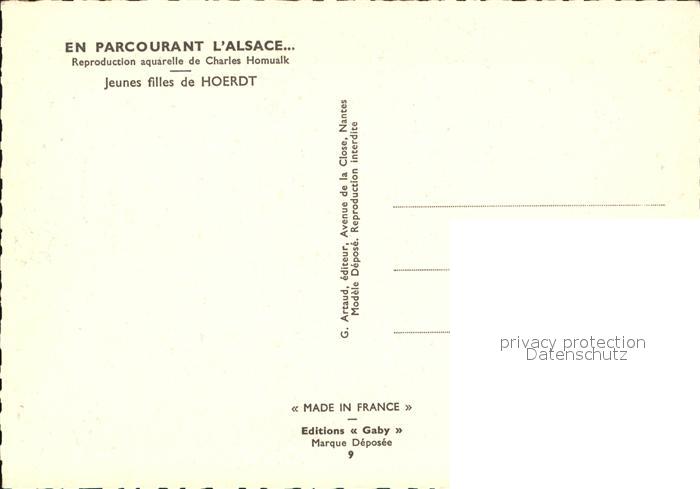 12537854 Hoerdt Frauen in Tracht Aquarell Charles Homualk postalisch nicht gelaufen Erhaltung siehe scans [KathaD75 dp141box] KatCode: 11170067667205