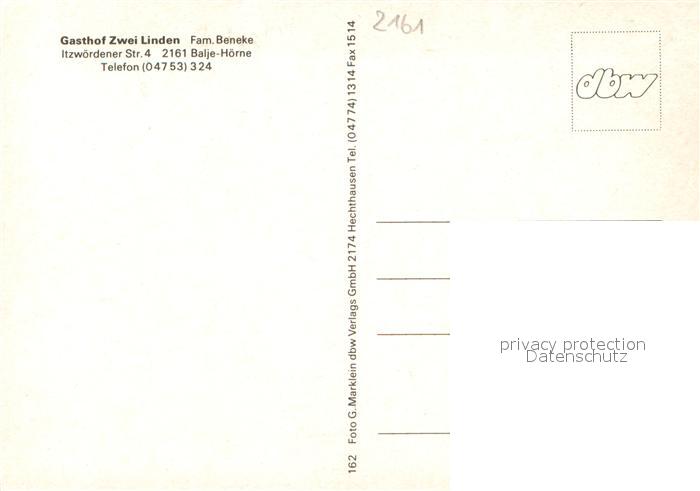 73714163 Hoerne Balje Gasthof Zwei Linden Speisesaal Leuchtturm postalisch nicht gelaufen Erhaltung siehe scans [WerneD78] KatCode: 11110003359004