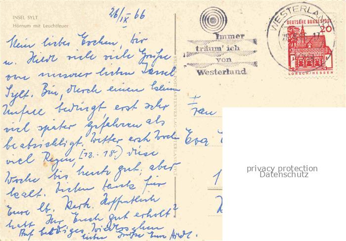 74025889 alte Postkarte Hoernum Sylt Ansicht mit Leuchtfeuer postalisch gelaufen Erhaltung siehe scans [FriedD77] KatCode: 11110001054046