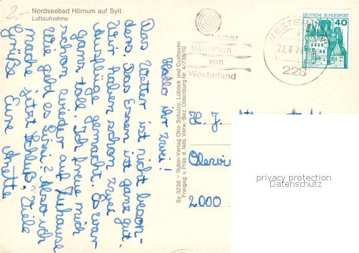 73160264 alte Postkarte Hoernum Sylt Fliegeraufnahme postalisch gelaufen Erhaltung siehe scans [KathaD81] KatCode: 11110001054046